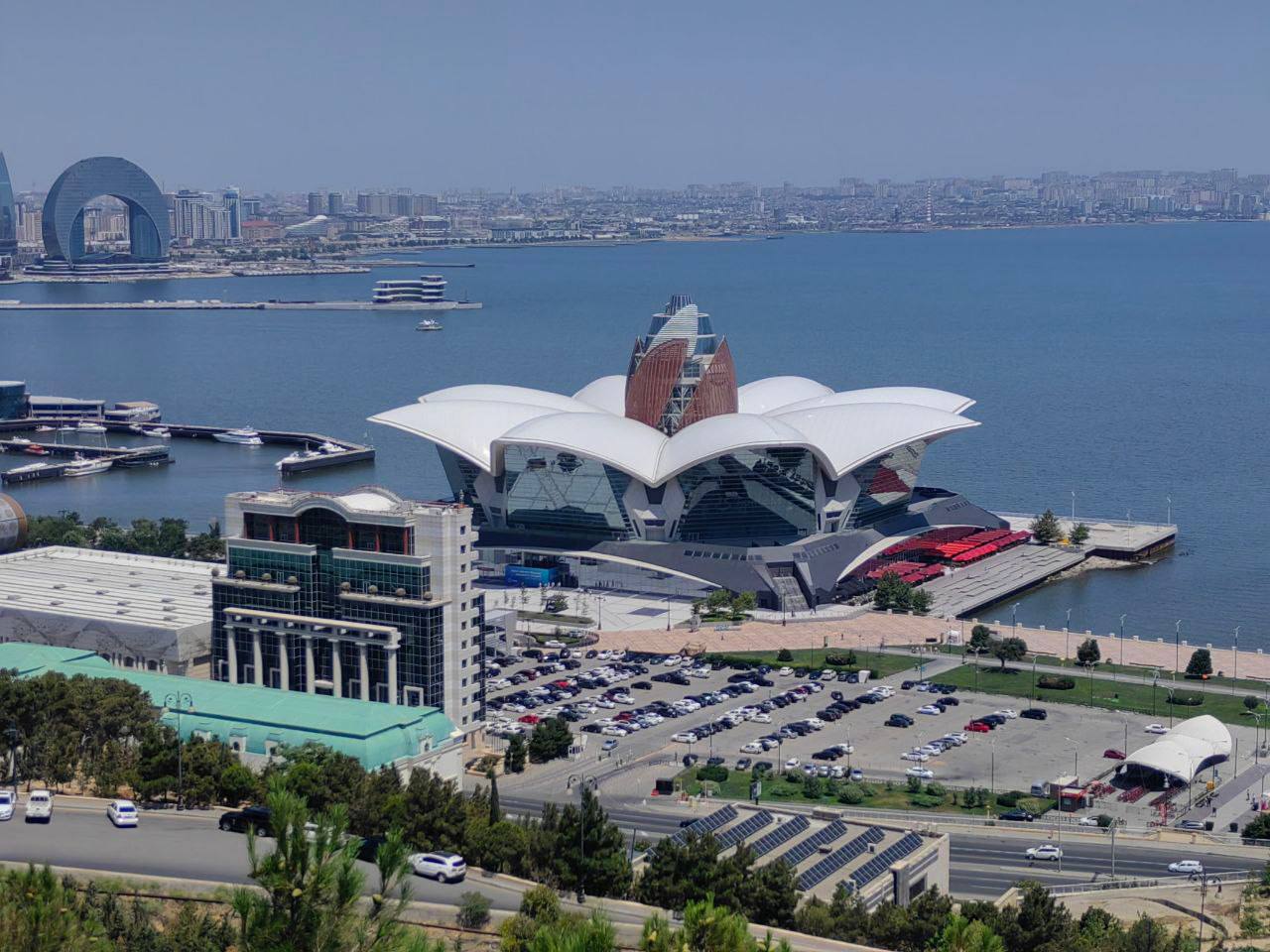 Выходим из Старого города. С восточной стороны перед нами проходит проспект Нефтяников, на юго-западе, за пределами комплекса находится красивейший сад и розарий городской Филармонии. Нижний край старого города Ичери Шехер выходит на знаменитый Приморский бульвар (прежде город спускался к самому морю, но море отодвинулось), и сейчас набережная Баку имеет длину 8 км.